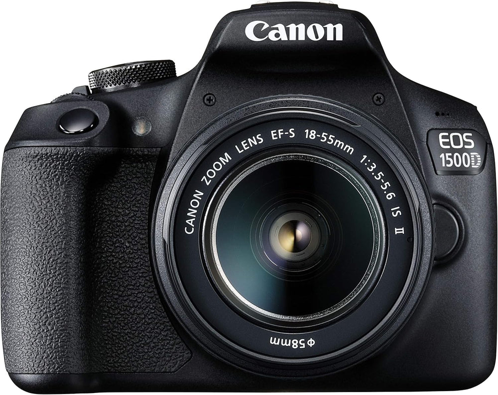 Compact and capable, the Canon EOS 1500D is a sleek entry-level DSLR featuring versatile imaging capabilities and a helpful feature-set. Incorporating a 24.1MP APS-C CMOS sensor and DIGIC 4+ image processor, the 1500D produces high-resolution stills with notable clarity, reduced noise, and a flexible native sensitivity range from ISO 100-6400 for working in a variety of lighting conditions. The sensor and processor also afford shooting continuously at up to 3 fps for photographing moving subjects, as well as Full HD 1080/30p video recording. Benefiting shooting with the optical viewfinder, a 9-point AF system incorporates a single centre cross-type AF point for increased accuracy and focusing speed, and a contrast-detection focusing system offers refined autofocus precision when recording video or photographing in live view. The rear 3.0" 920k-dot LCD offers a bright, clear image for playback and review, and built-in Wi-Fi with NFC also offers the ability to wirelessly share imagery from your camera to a linked mobile device for instant online sharing.