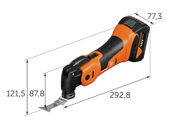 The powerful FEIN battery-powered multitool for the fastest work progress in extension and renovation work in the version without battery and charger. With bi-metal saw blade for wood, metal and plastics.
