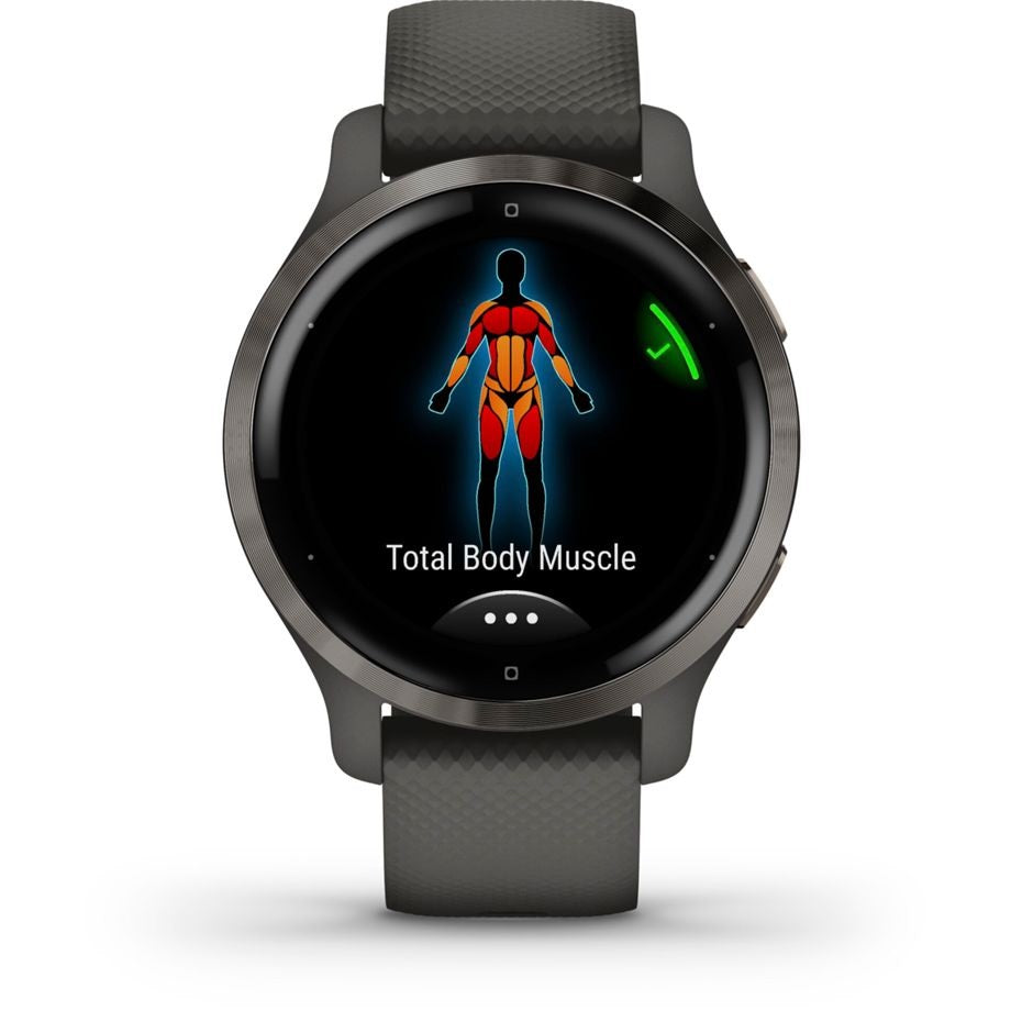 Venu® 2S fitness smartwatch reviews your stress, heart rate, sleep and activity level to gauge your body’s energy levels.