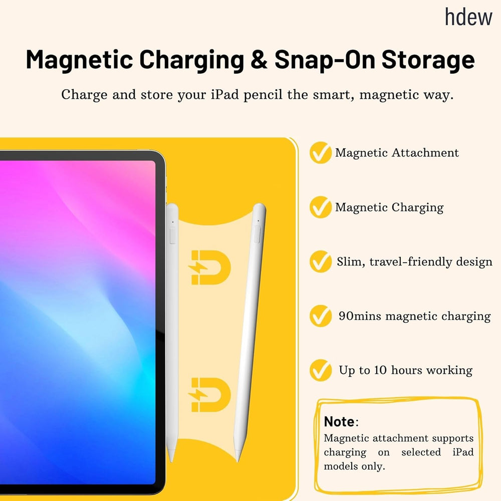 HDEW's pencil for iPad works with any iPad's that support Pencil use, including iPad 6-10/A16 Gen, Air 3-5/M2/M3, Mini 5/6, Pro 11-13''. An ideal addition to your iPad accessories!