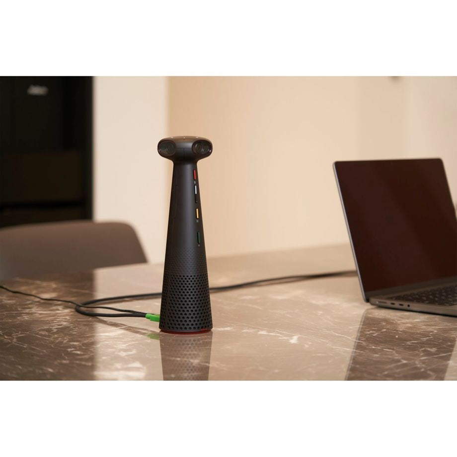 • 360° IMAGE AND SOUND - TOTEM 360 is a complete audio-visual solution, providing a seamlessly stitched 360° image with Panoramic 5K, sound from an all-around speaker, and capturing voices via an array of four beamforming microphones with AI noise reduction.