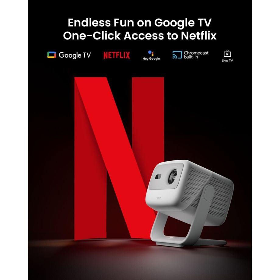 The N1S is pre-installed with Google TV - including Netflix, access to over 10,000 apps and Chromecast built-in. This turns the projector into an all-in-one smart TV solution, without the need for external streaming sticks.