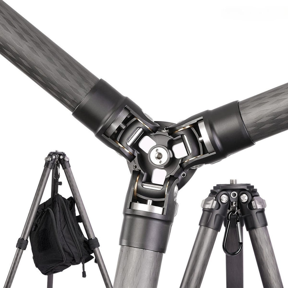 Featuring a no-column compact design, this tripod ensures maximum stability while maintaining a smaller footprint, perfect for on-the-go shooting. Crafted with Toray 100% 10-layer carbon fibre leg tubes, its cross rhombus structure enhances strength, stability, and minimises vibration for crisp, clear shots.