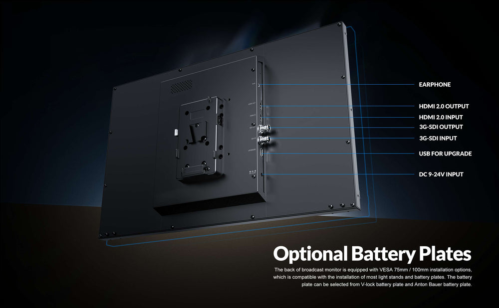 | Compatible Batteries | V-Lock or Anton Bauer Mount |