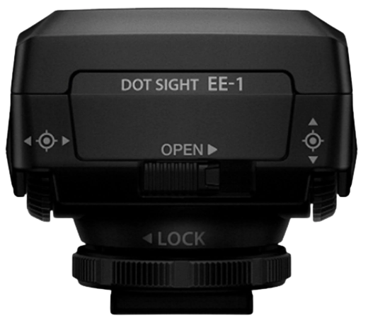 The OLYMPUS EE-1 Dot Sight is a shoe-mount dot sight ideal for super-telephoto photography of wild birds. The sight offers a centre aiming dot with adjustable brightness and position to enable fast subject acquisition and tracking. You'll be able to tell whether your aim is right on target or slightly off without looking through the camera's viewfinder or using the monitor. The EE-1 Dot Sight fits right into the camera's hot shoe and has a slide lever opening mechanism. Built for durability, it is both dust and splashproof. One CR2032 lithium battery powers the EE-1.