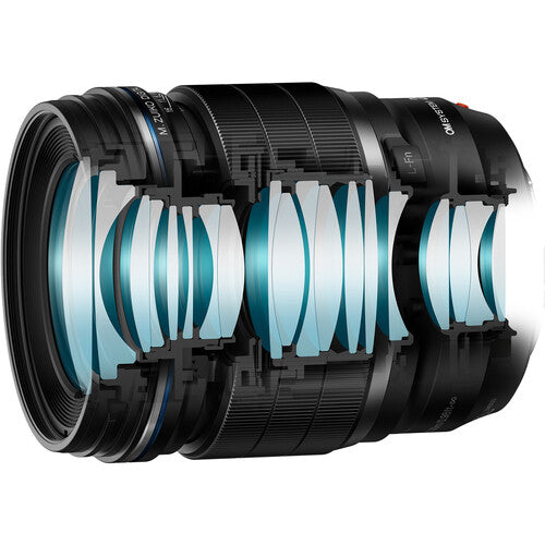 A high-speed normal-length prime featuring an advanced optical design, the M.Zuiko Digital ED 25mm f/1.2 PRO Lens from Olympus is a 50mm equivalent lens designed for Micro Four Thirds mirrorless cameras. Its unique 19 elements, 14 groups construction incorporates extra-low dispersion, aspherical, and high refractive index elements to significantly reduce both chromatic and spherical aberrations for notable image clarity, sharpness, and colour accuracy. The lens is also characterised by a bright f/1.2 maximum aperture, which benefits working in low-light conditions and affords extensive control over depth of field. A nine-blade aperture is featured as well, to achieve a smooth bokeh quality when working with shallow depth of field techniques, and a Z Coating Nano has been applied to individual elements to limit flare and ghosting for improved contrast.