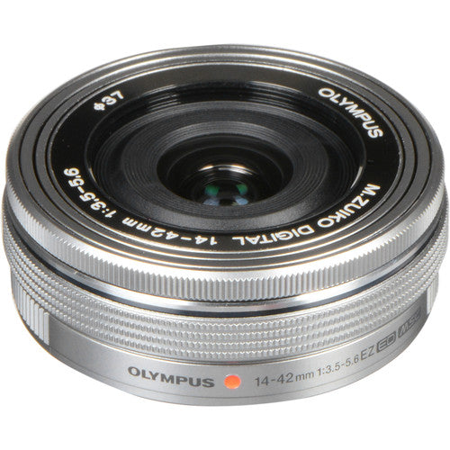 Distinguished by its slim pancake form factor, the black M.Zuiko Digital ED 14-42mm f/3.5-5.6 EZ from Olympus is a versatile 28-84mm equivalent zoom designed for Micro Four Thirds mirrorless cameras. Despite its compact profile, this lens includes an advanced optical design, which includes aspherical, low dispersion, and high refractive index elements to achieve a high degree of sharpness and clarity throughout the zoom range. A ZERO coating has also been applied to individual elements to suppress flare and ghosting for high contrast, colour-accurate imagery. In addition to the optical design and small size, the lens is also characterised by its Electronic Zoom mechanism, for smooth and constant zoom movements, and a Movie & Still Compatible (MSC) AF system that is quick, quiet, and precise to suit both video and photo applications.