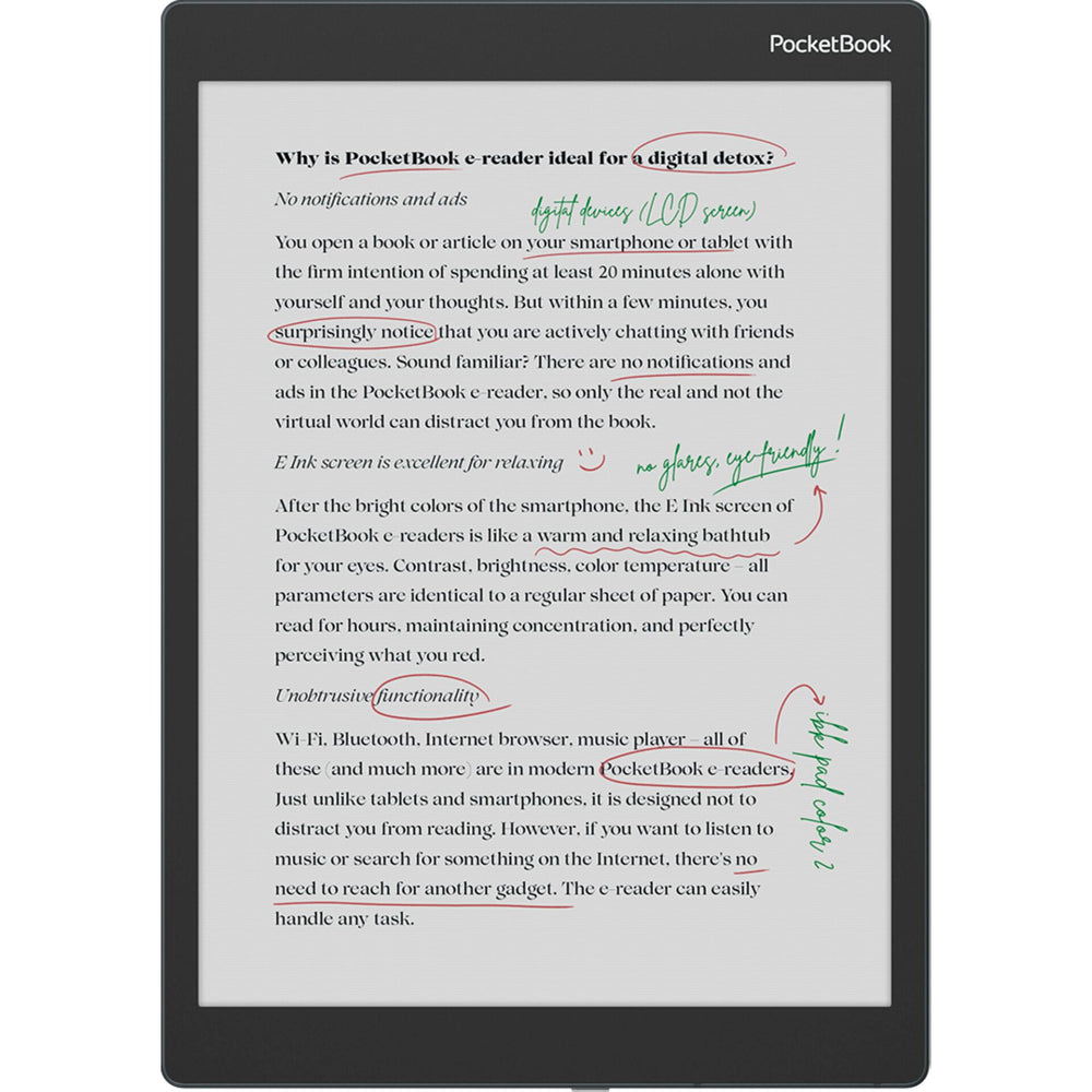 Thanks to the integrated loudspeaker and Bluetooth functionality, the PocketBook Color Note is also perfect for enjoying audio books and music, regardless of whether the audio content is consumed via the loudspeaker or wireless headphones. And if you can't or don't want to read your book, simply use the pre-installed text-to-speech function and have it read aloud.