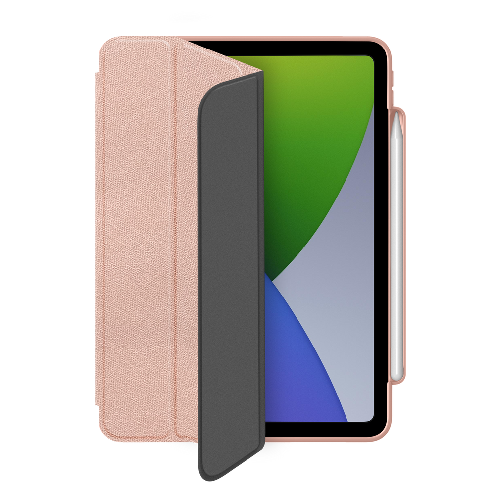 MUSE is a premium multi-angle folio case featuring a transparent back and stylish woven, water-resistant front cover. The tri-fold design can easily fold into different positions to create a perfect stand for reading, viewing, typing or making FaceTime calls. This case offers optimal protection: with shock absorbent edges, polycarbonate, rigid back and microfibre inner lining helping prevent scrapes and scratches. The crystal clear back allows you to display your iPad, its colour and any engraved customisations whilst also protecting it from damage. MUSE automatically wakes your iPad when opened, and puts it to sleep when closed, helping preserve battery life. With built-in Apple Pencil holder, keeping it secure on the move and conveniently charged.
