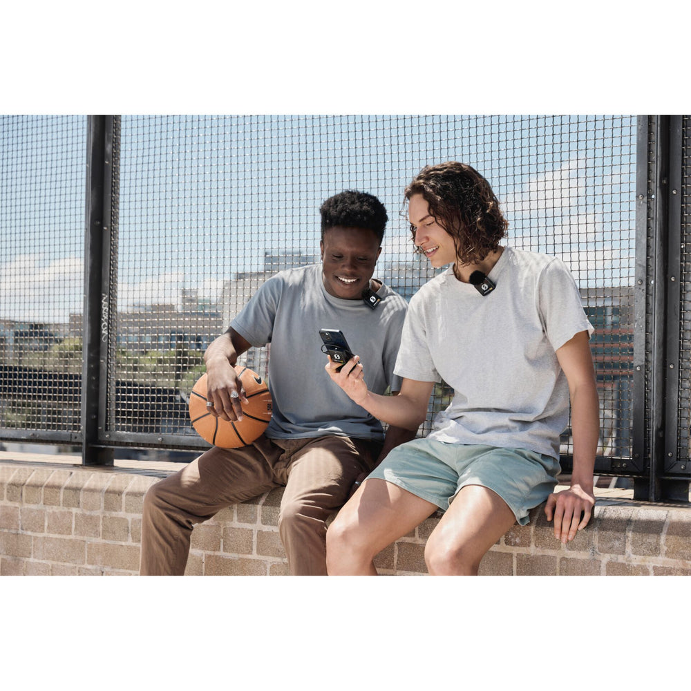 A digital wireless microphone system that is ideal for creating social media content on your smartphone or for spontaneous filming with a DSLR/mirrorless camera. It consists of two transmitter and one receiver module, each with an integrated microphone. Thanks to Plug & Play, it is easy to use and works seamlessly with cameras, computers and iPhones or Android smartphones.