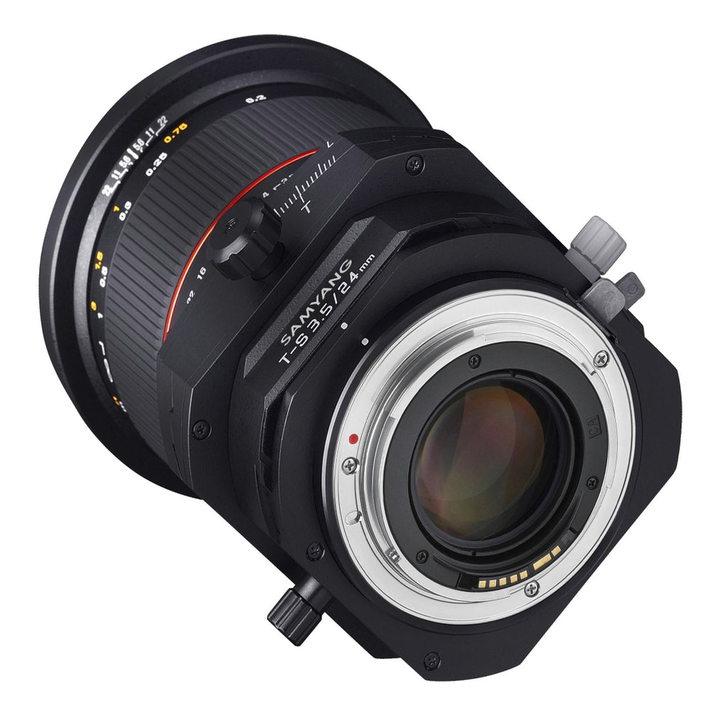 The 24mm f/3.5 Tilt-Shift (Canon EF) from Samyang is a wide-angle, full-frame lens fitted with perspective control and tilt-shift functions. A tilt-shift lens allows the user to control perspective and correct convergence of lines within your frame, useful especially in architecture, landscape and product photography. The optical tilt mechanisms enable precise control of depth of field along with perspective control. This 24mm f/3.5 lens is compatible with both digital and film formats with an angle of view of 83.5º and, on an APS-C size sensor, has an angle of view of 56.9º and focal length equivalent of 38.4mm.