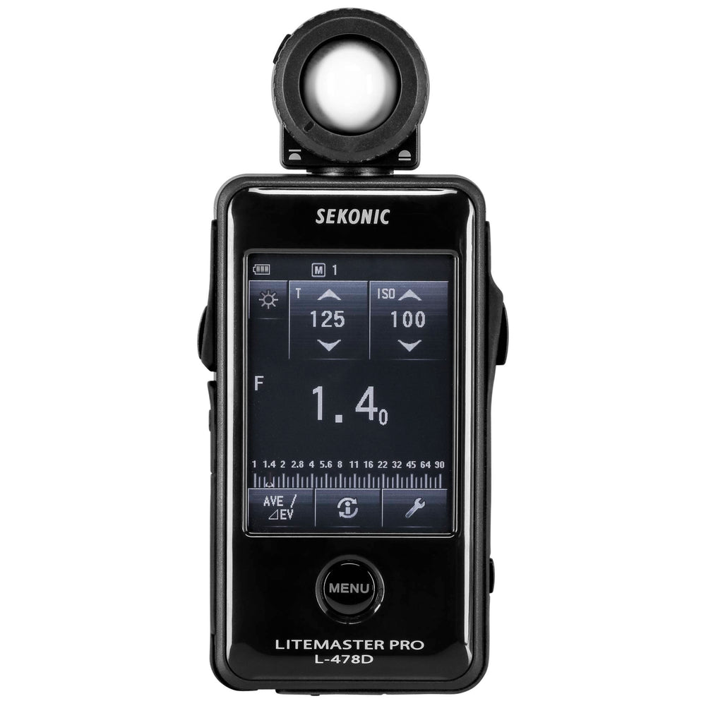Sekonic L-478D LiteMaster Pro has an array of unique, must-have feature for both motion and still story tellers. Its compact size is both instantly familiar and comfortable to use. The large LCD (2.7") displays ambient, flash, cine and a host of other information in a clear and understandable way. Settings are made by simply touching or sliding a finger over the screen.